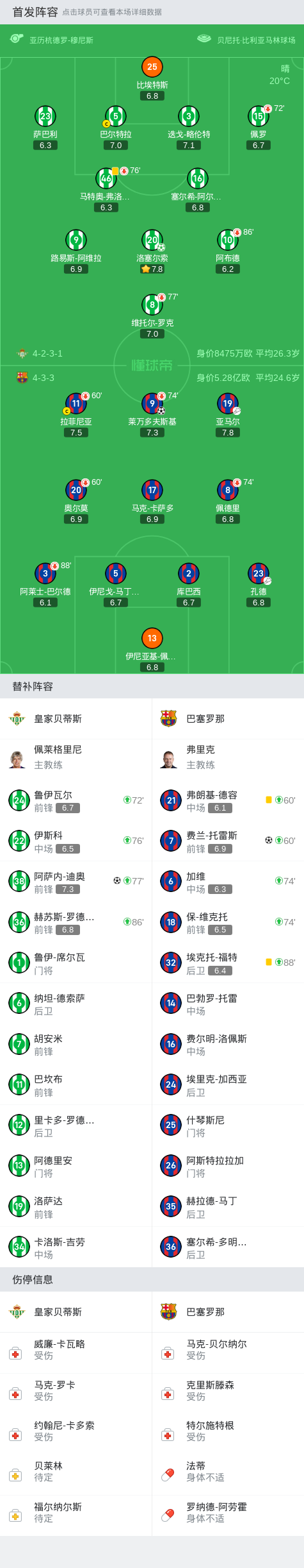 西甲巴萨客场2-2战平贝蒂斯详细回顾